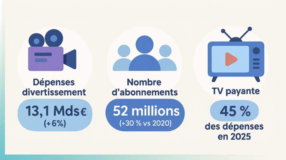 Selon un rapport de Futuresource Consulting, les dépenses totales des consommateurs britanniques sur le marché du divertissement vidéo (vidéo en ligne, télévision payante, SVoD, vidéo physique à domicile et box-office) devrait augmenter de 2 % en 2025 pour atteindre 13,1 Mds€. Une croissance principalement portée par la SvoD pour laquelle les dépenses augmenteront de 6 % en 2025, pour atteindre environ 40 % de la valeur totale du marché.