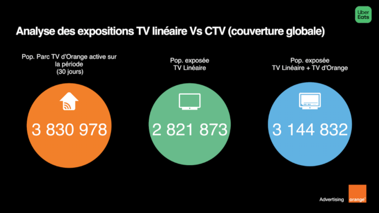 « En choisissant Orange TV, nous avons augmenté notre couverture de plus de 8,4 points. Au-delà du gain quantitatif, cette diffusion nous a permis de toucher davantage les foyers faiblement exposés. En effet, 46 % des impressions en Home Screen Orange TV ont été distribuées auprès des petits exposés à la campagne linéaire », explique Ann Brandford, directrice marketing d’Uber Eats, dans un communiqué d’Orange Advertising.