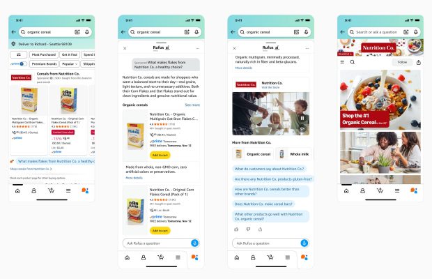 Ces deux formats se distinguent des résultats sponsorisés classiques, tel qu’on les connaît déjà sur Amazon ou sur d’autres plateformes de commerce en ligne. Il ne s’agit pas d’afficher un produit en haut des résultats de recherche, au détriment des résultats organiques. Mais de suggérer des questions pour engager une conversation avec Rufus, censée augmenter le taux de conversion
