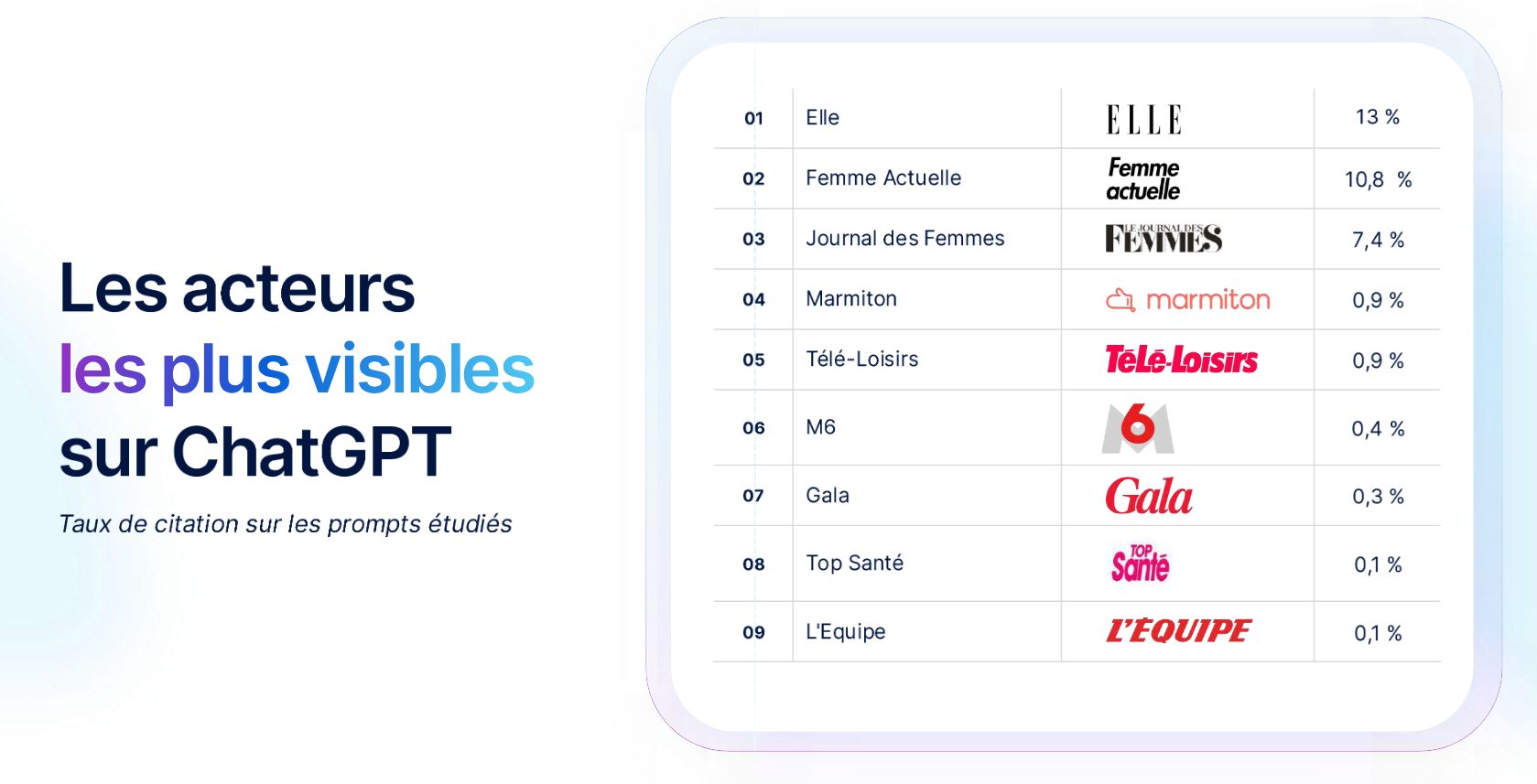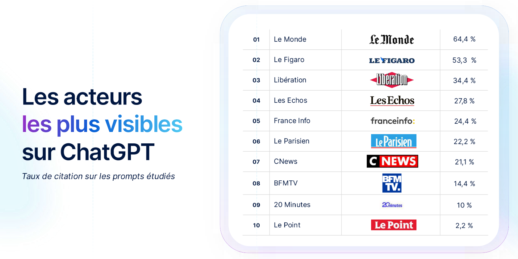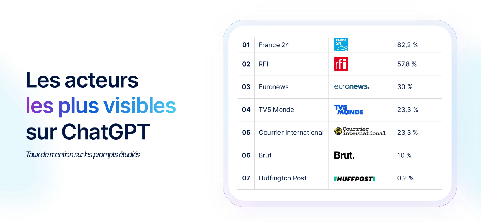 Les acteurs les plus visibles sur ChatGPT sont les suivants :