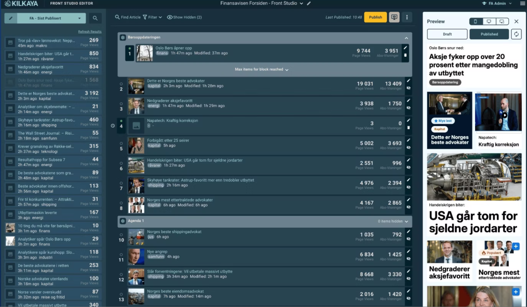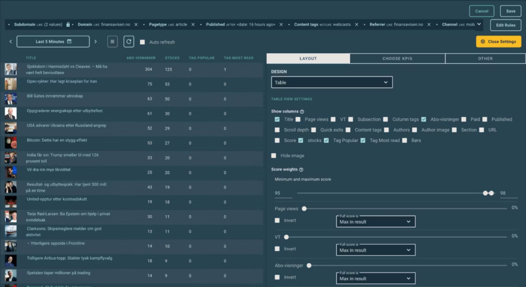 Finansavisen a aussi automatisé la hiérarchie des articles de sa page d’accueil.