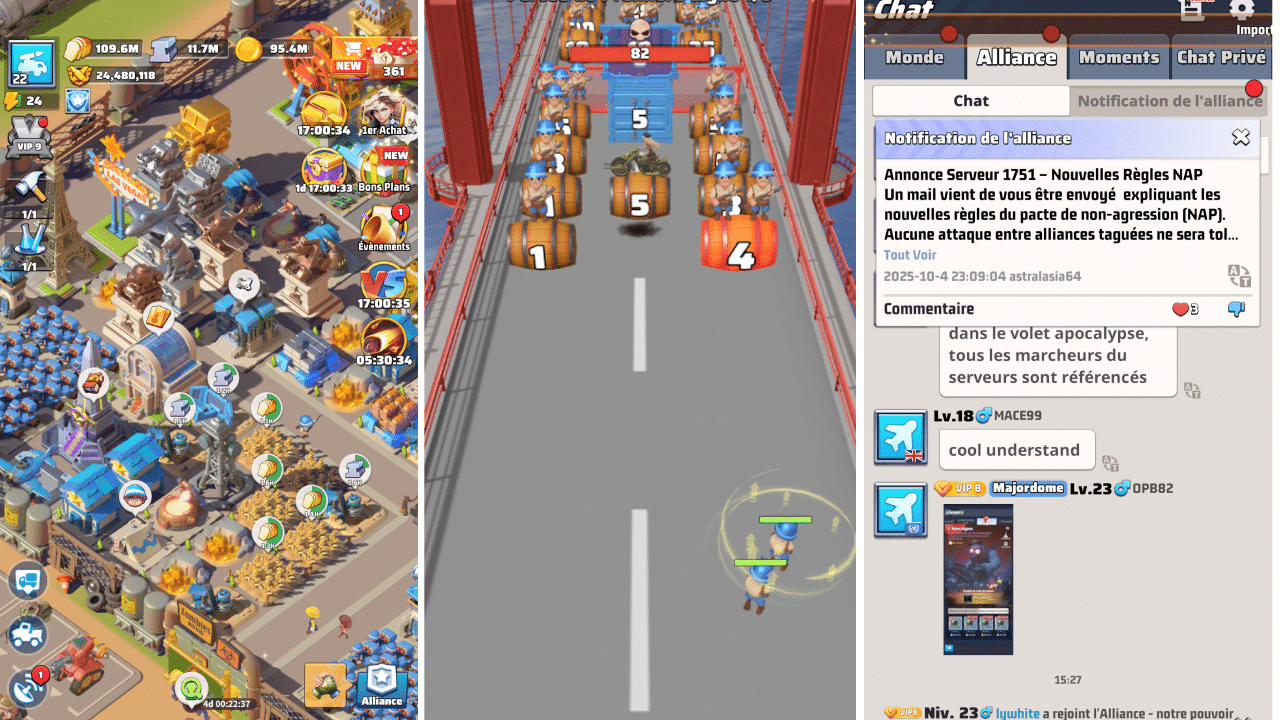 Les jeux mobile sont incroyablement malins pour stimuler l’engagement, il faut s’en inspirer. Proposez des quiz d’actualité, des défis, des classements, des mini-jeux intégrés à vos contenus. Et n’oubliez pas le chat collectif et individuel. L’interface de « The last war » est un exemple du genre : simple mais hyper-efficace (avec un outil de traduction intégré !).