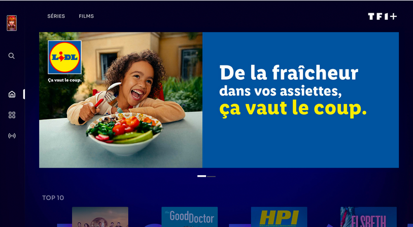 Dans un univers de la CTV et du streaming devenu très concurrentiel, c’est TF1 Pub qui a dégainé en premier avec l’annonce, début mars, d’un « partenariat d’envergure avec Lidl ». A la clé, un dispositif 100 % CTV, mis en place en fil rouge sur TF1+ deux jours par semaine pendant un an, qui s’appuie sur son format Cover+. Lancé en 2025, ce format permet d’afficher une campagne en première position du carrousel de la homepage sur TF1+.