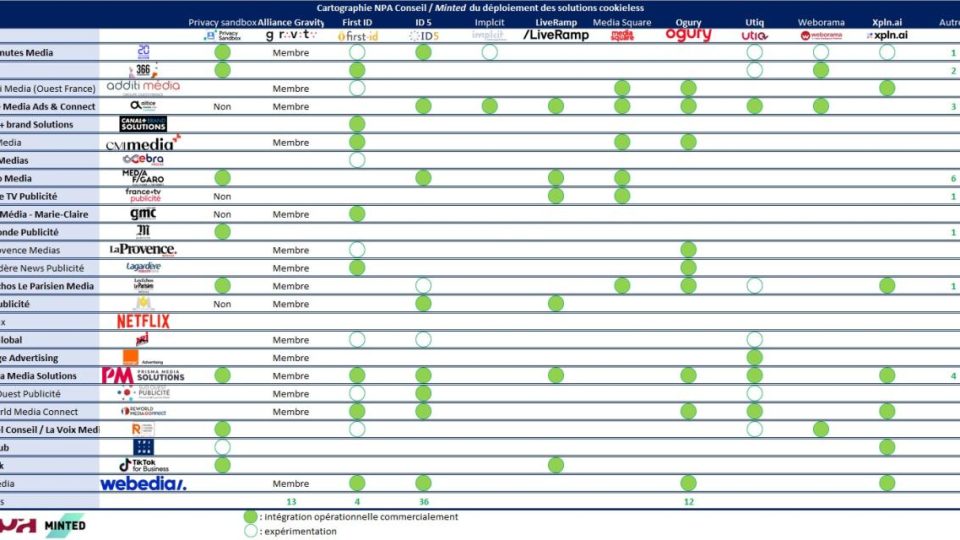 A contrario, TF1 Pub, France TV Publicité et M6 Publicité, dont une bonne partie des inventaires est cookieless “by design”, car affiché sur un écran de TV, et qui, pour le reste, imposent un accès logué à leurs plateformes, semblent laisser le sujet de côté.