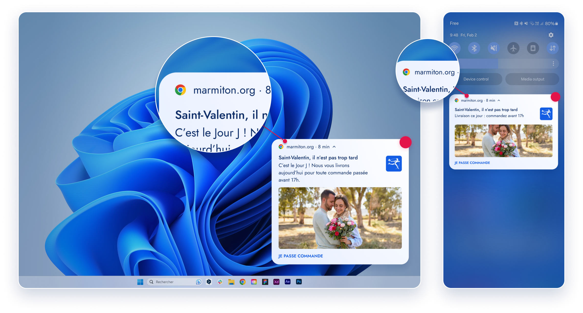 La Web Push est un format de notification publicitaire s’affichant directement sur l’écran de l’appareil (ordinateur ou mobile), totalement décorrélé de la page web consultée. Nécessitant un consentement explicite de l’internaute, elle est nativement conforme au RGPD et permet de contourner les adblockers et la fraude. « Il n’y a plus de problème de brand safety. Pourquoi ? Parce que la pub ne s’affiche pas sur une page à risque. Elle est toujours sur l’écran de l’internaute », explique Edouard Ducray.