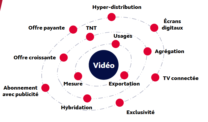 Les frontières entre les acteurs de la galaxie vidéo « s’estompent aujourd’hui de manière très claire », a-t-elle aussi noté. Séparer TV et digital sur le téléviseur n’a aujourd’hui plus beaucoup de sens… Les modèles se réinventent sous l’effet de la multiplication des contenus et de leur hyper-distribution, mais aussi des plateformes qui deviennent des agrégateurs. De fait, la galaxie vidéo s’est complexifiée…
