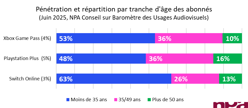 D’après le Baromètre des Usages Audiovisuels, les différentes formules du Xbox Game Pass cumulaient environ 1,1 million d’abonnés à la fin du 1er semestre 2025, contre 1,3 à 1,4 million pour les forfaits Playstation Plus.