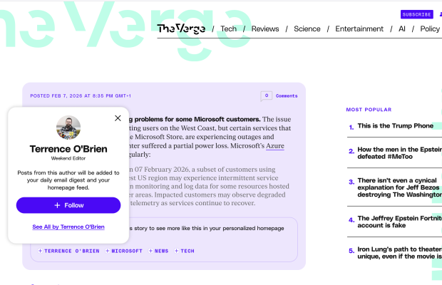 Exemples : The Guardian propose myGuardian. The Verge permet de suivre sujets et auteurs.