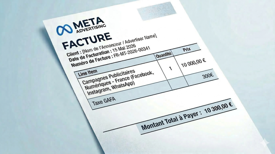Le 1er juillet 2026, Meta appliquera une majoration de 3 % sur les budgets publicitaires en France afin de compenser la taxe sur les services numériques (DST), dite « taxe GAFA ».