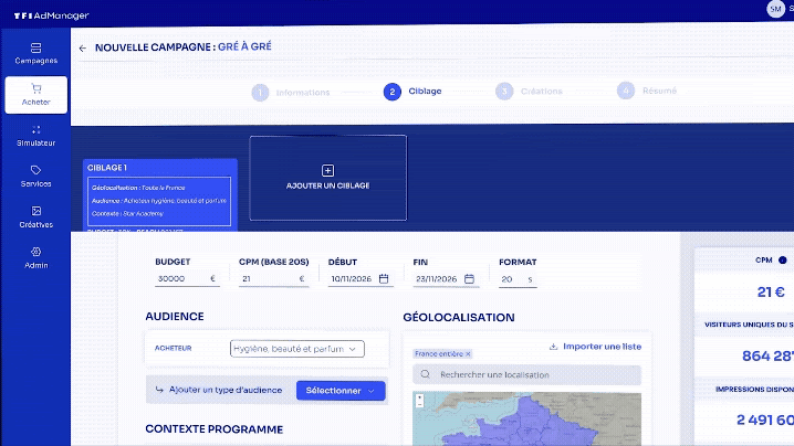 Ad Manager vise à structurer et automatiser l’accès aux inventaires vidéo commercialisés par TF1 PUB, tout en proposant un point d’accès unique pour la simulation, l’achat et le suivi des campagnes. L’outil offre donc une approche self-service inspirée des standards des GAFAM.