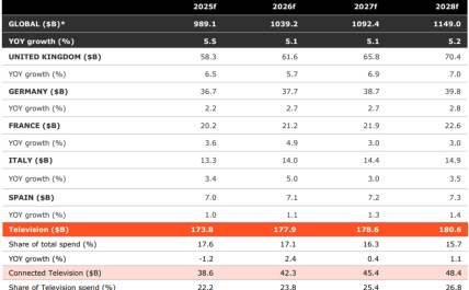 Dentsu prévoit un léger ralentissement du marché pub mondial, qui devrait néanmoins rester robuste autour de +5 % par an jusqu’en 2028,…