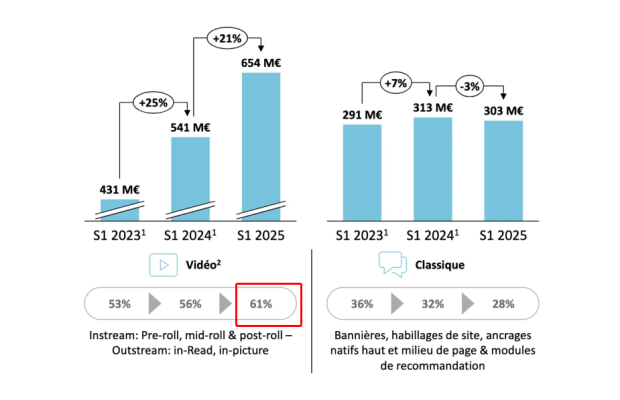 Par ailleurs, la vidéo représente plus de 60 % du volume des publicité numériques traditionnelles (bannières, annonces avant pendant ou après la vidéo).