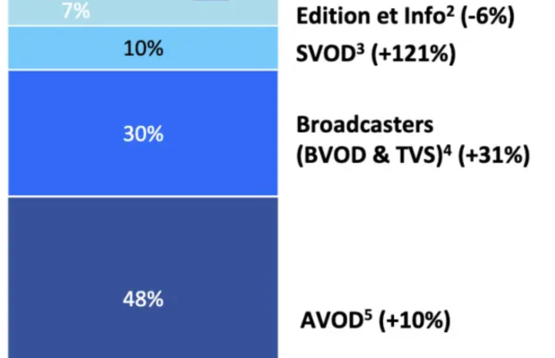 Et il faut ajouter l’AVOD, la vidéo à la demande principalement financée par la publicité (Youtube, Rakuten, Pluto TV, Molotov…) qui représente la plus grosse part de cette CTV, et le segment en croissance la plus forte selon le dernier rapport du WARC (World Advertising Research Center)